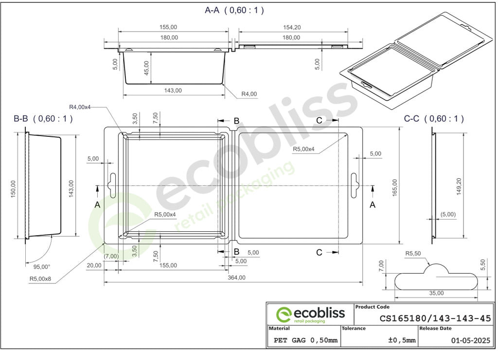 Whether you're packaging electronics, cosmetics, tools or other products, these clamshell blisters offer a combination of visibility, durability and easy handling and is made from sturdy, fully recyclable PET.