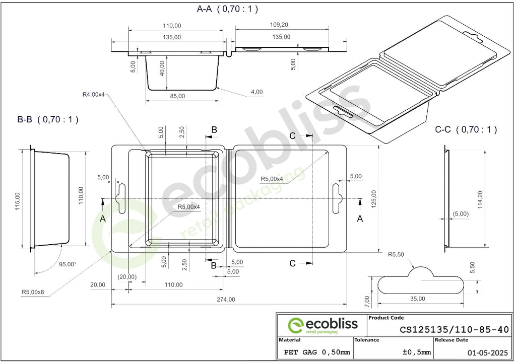 Whether you're packaging electronics, cosmetics, tools or other products, these clamshell blisters offer a combination of visibility, durability and easy handling and is made from sturdy, fully recyclable PET.