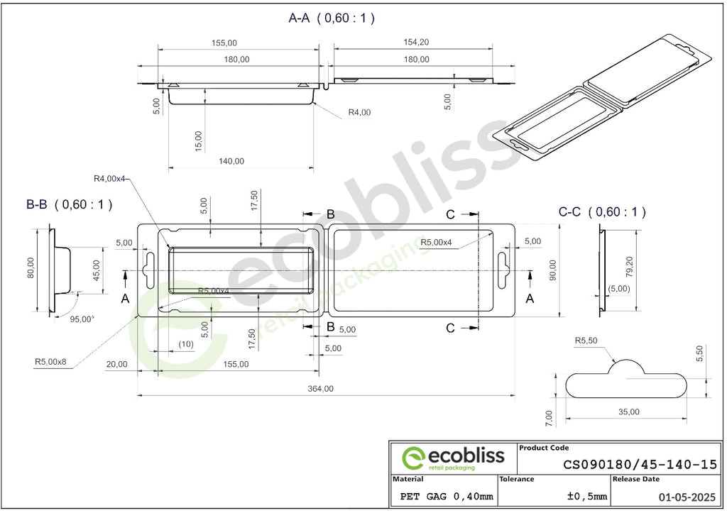 Whether you're packaging electronics, cosmetics, tools or other products, these clamshell blisters offer a combination of visibility, durability and easy handling and is made from sturdy, fully recyclable PET.