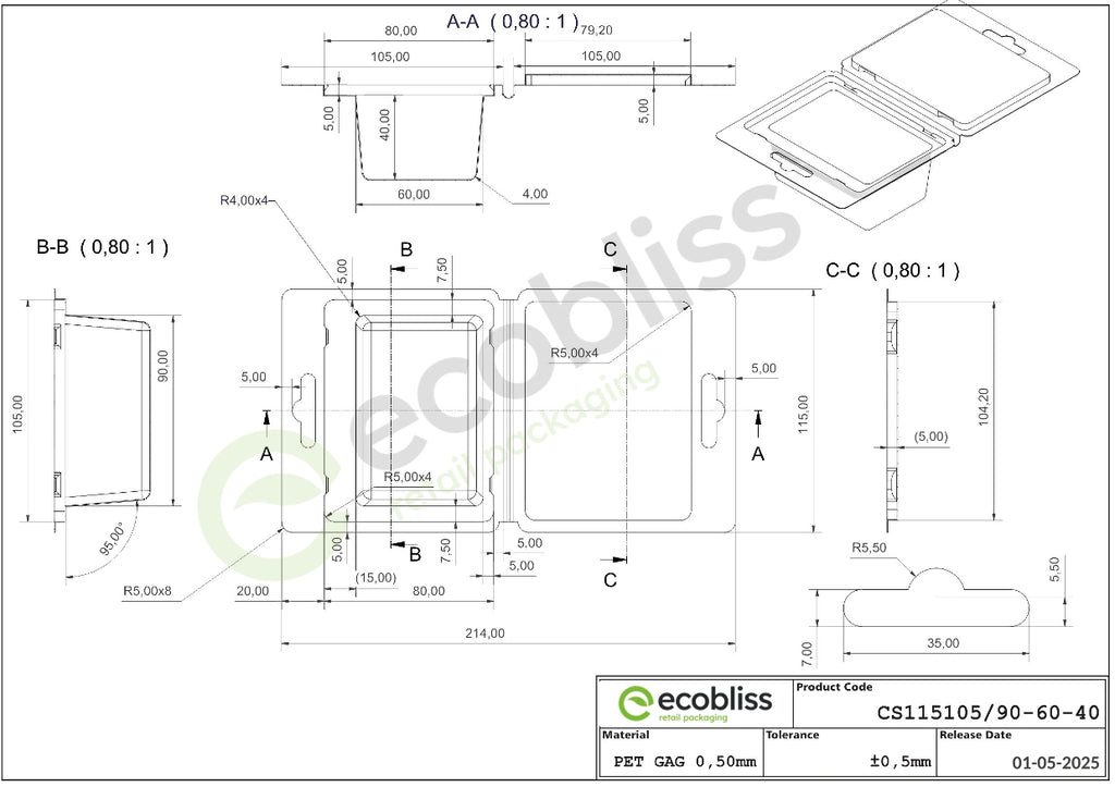 Whether you're packaging electronics, cosmetics, tools or other products, these clamshell blisters offer a combination of visibility, durability and easy handling and is made from sturdy, fully recyclable PET.