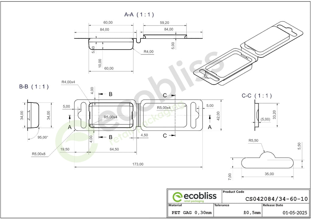 Whether you're packaging electronics, cosmetics, tools or other products, these clamshell blisters offer a combination of visibility, durability and easy handling and is made from sturdy, fully recyclable PET.