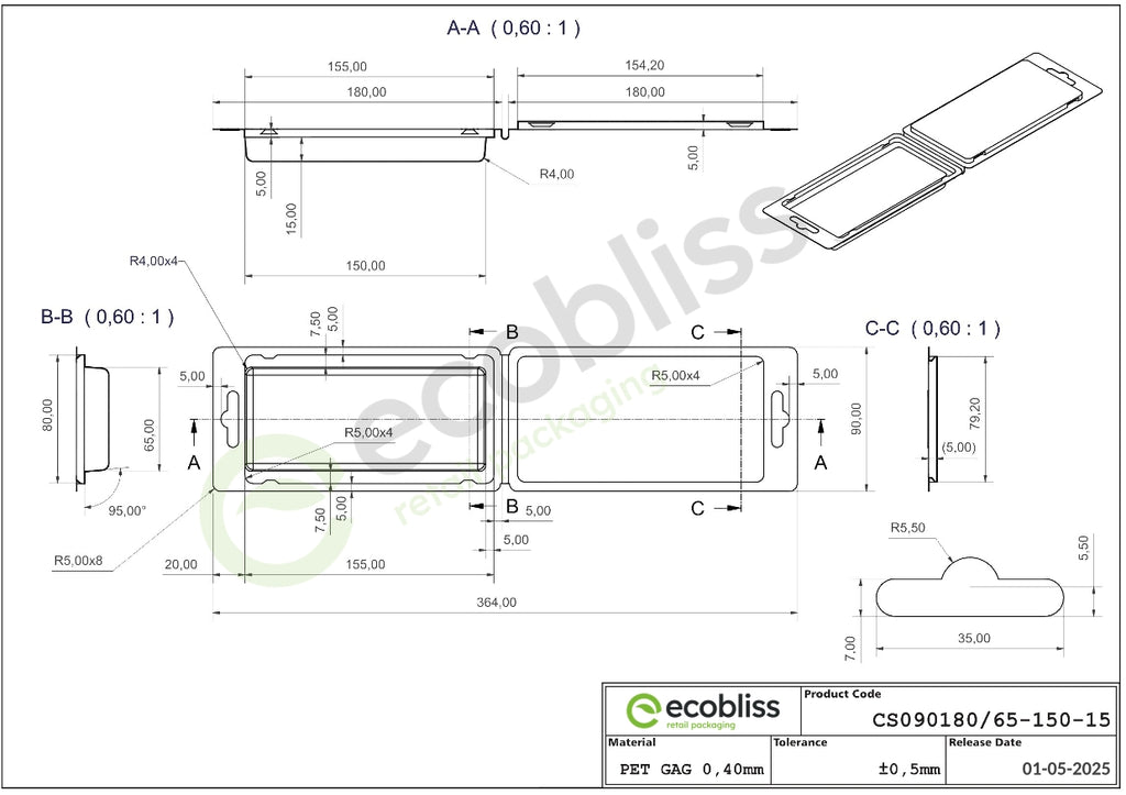 Whether you're packaging electronics, cosmetics, tools or other products, these clamshell blisters offer a combination of visibility, durability and easy handling and is made from sturdy, fully recyclable PET.