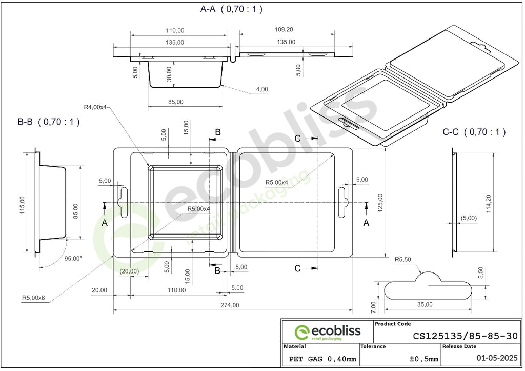 Whether you're packaging electronics, cosmetics, tools or other products, these clamshell blisters offer a combination of visibility, durability and easy handling and is made from sturdy, fully recyclable PET.