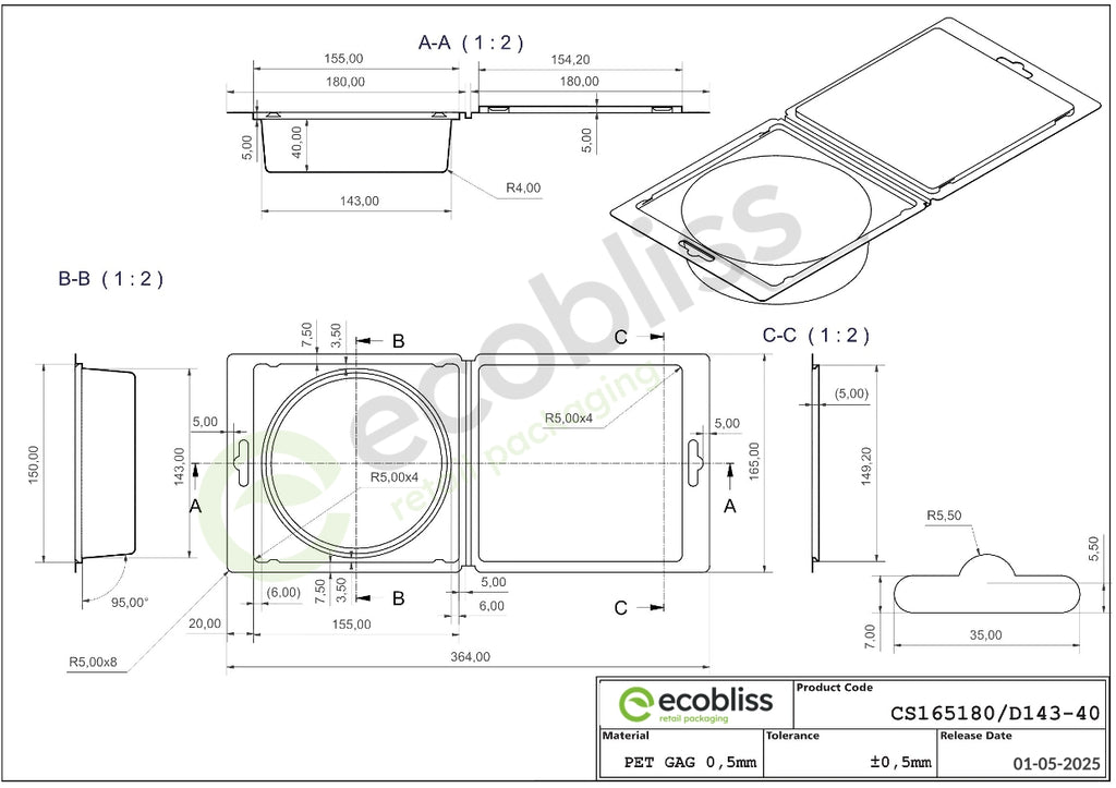 Whether you're packaging electronics, cosmetics, tools or other products, these clamshell blisters offer a combination of visibility, durability and easy handling and is made from sturdy, fully recyclable PET.