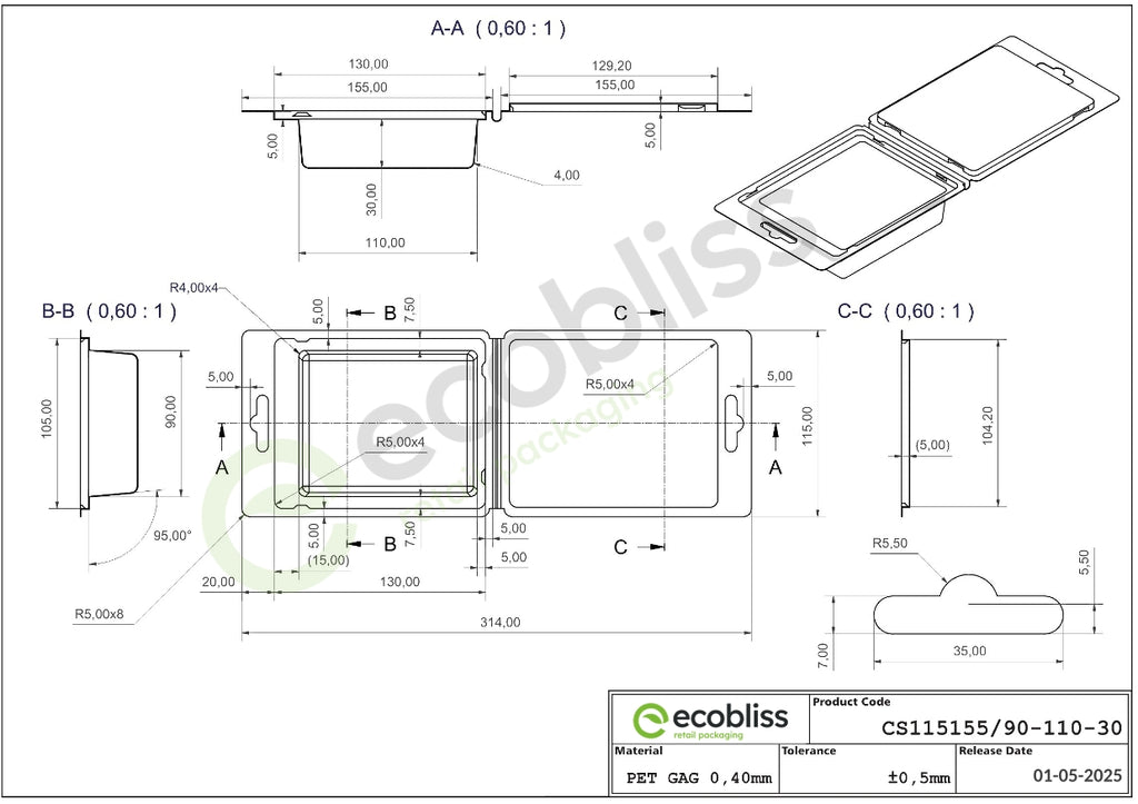 Whether you're packaging electronics, cosmetics, tools or other products, these clamshell blisters offer a combination of visibility, durability and easy handling and is made from sturdy, fully recyclable PET.