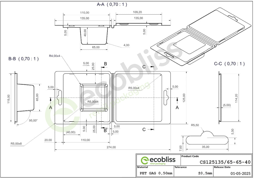 Whether you're packaging electronics, cosmetics, tools or other products, these clamshell blisters offer a combination of visibility, durability and easy handling and is made from sturdy, fully recyclable PET.