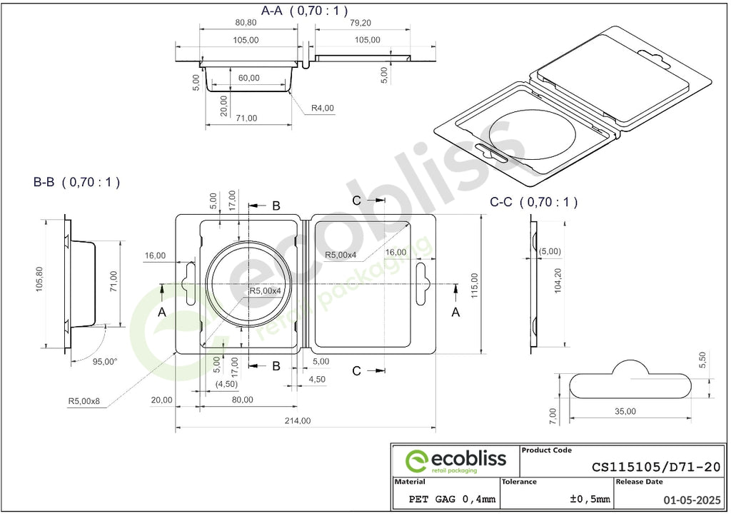 Whether you're packaging electronics, cosmetics, tools or other products, these clamshell blisters offer a combination of visibility, durability and easy handling and is made from sturdy, fully recyclable PET.