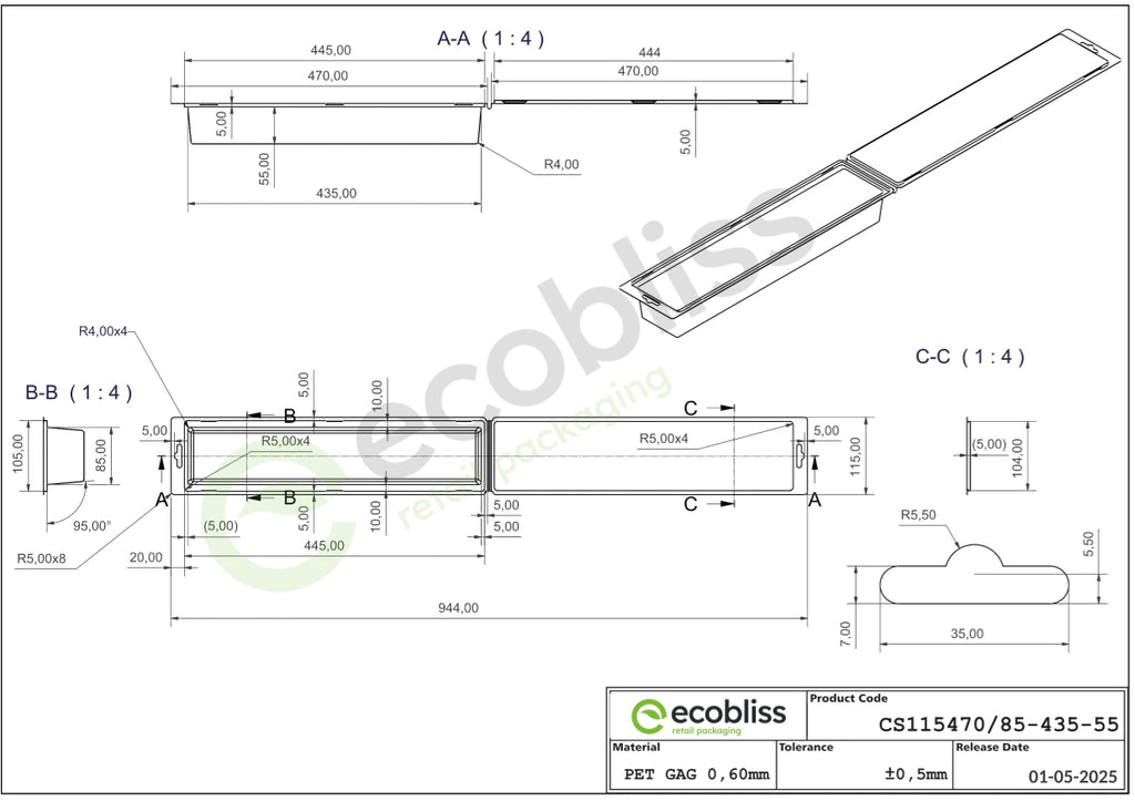 Whether you're packaging electronics, cosmetics, tools or other products, these clamshell blisters offer a combination of visibility, durability and easy handling and is made from sturdy, fully recyclable PET.