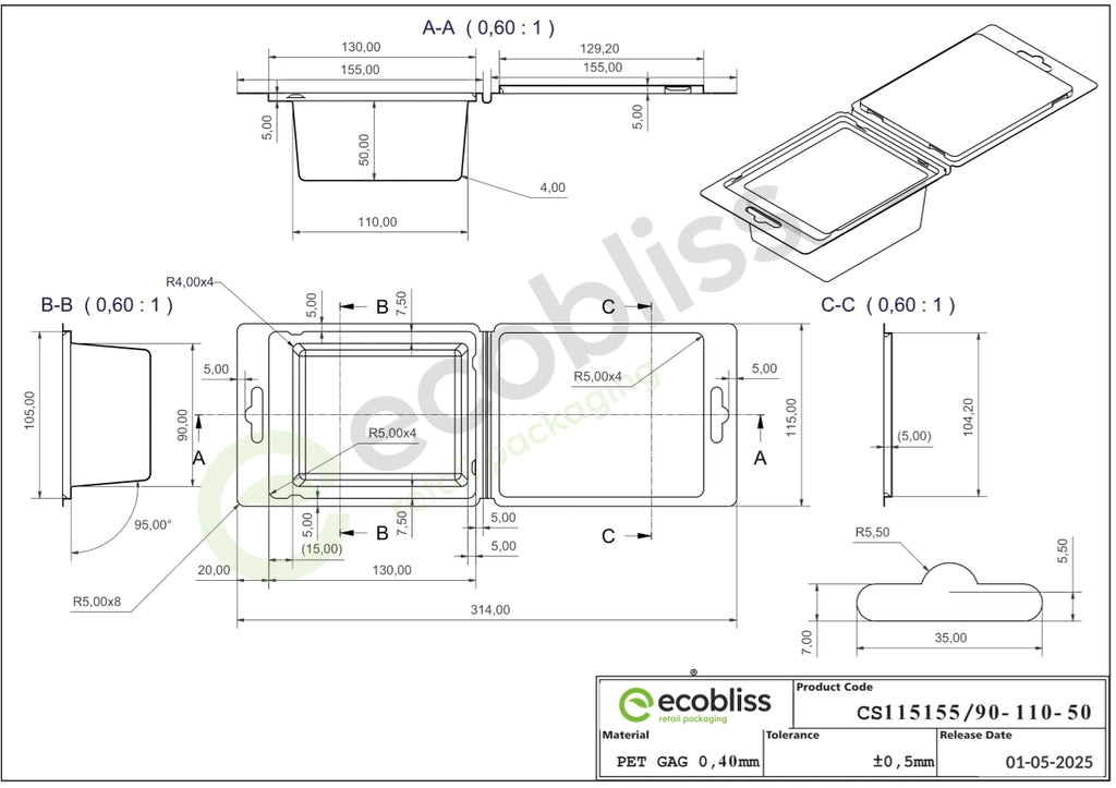 Whether you're packaging electronics, cosmetics, tools or other products, these clamshell blisters offer a combination of visibility, durability and easy handling and is made from sturdy, fully recyclable PET.