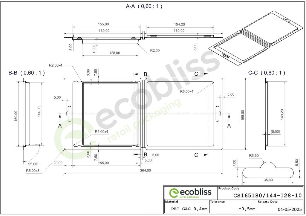Whether you're packaging electronics, cosmetics, tools or other products, these clamshell blisters offer a combination of visibility, durability and easy handling and is made from sturdy, fully recyclable PET.