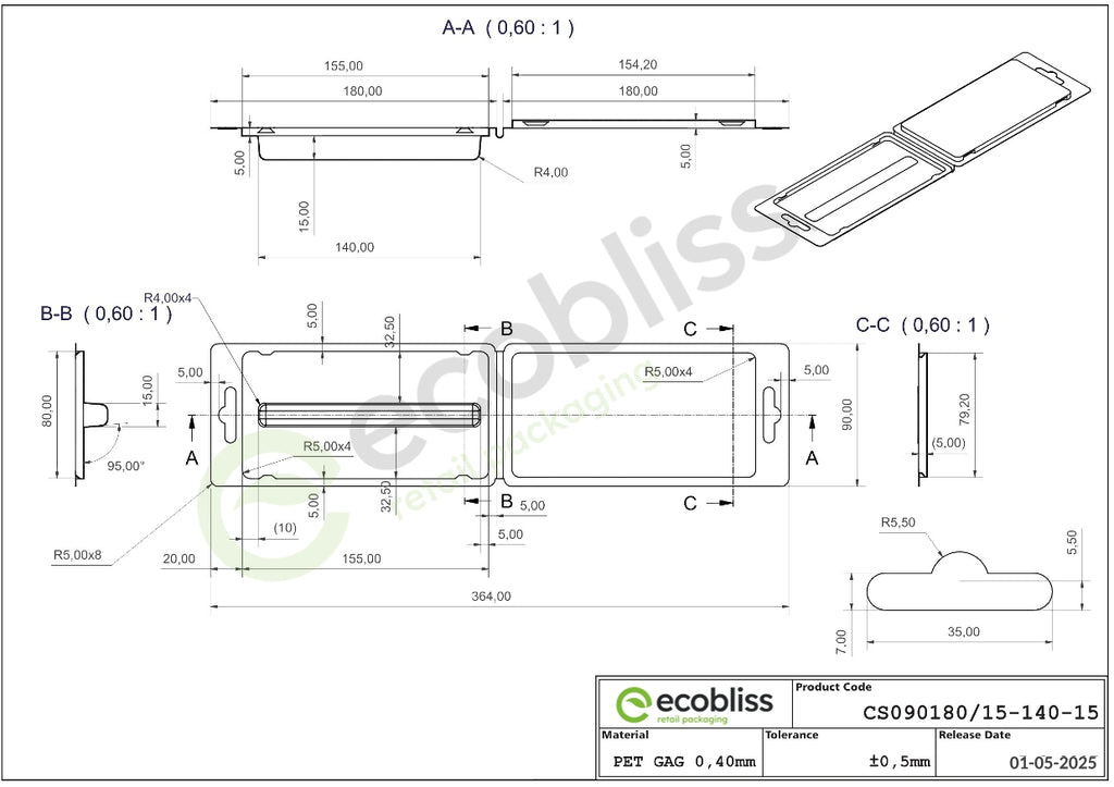 Whether you're packaging electronics, cosmetics, tools or other products, these clamshell blisters offer a combination of visibility, durability and easy handling and is made from sturdy, fully recyclable PET.