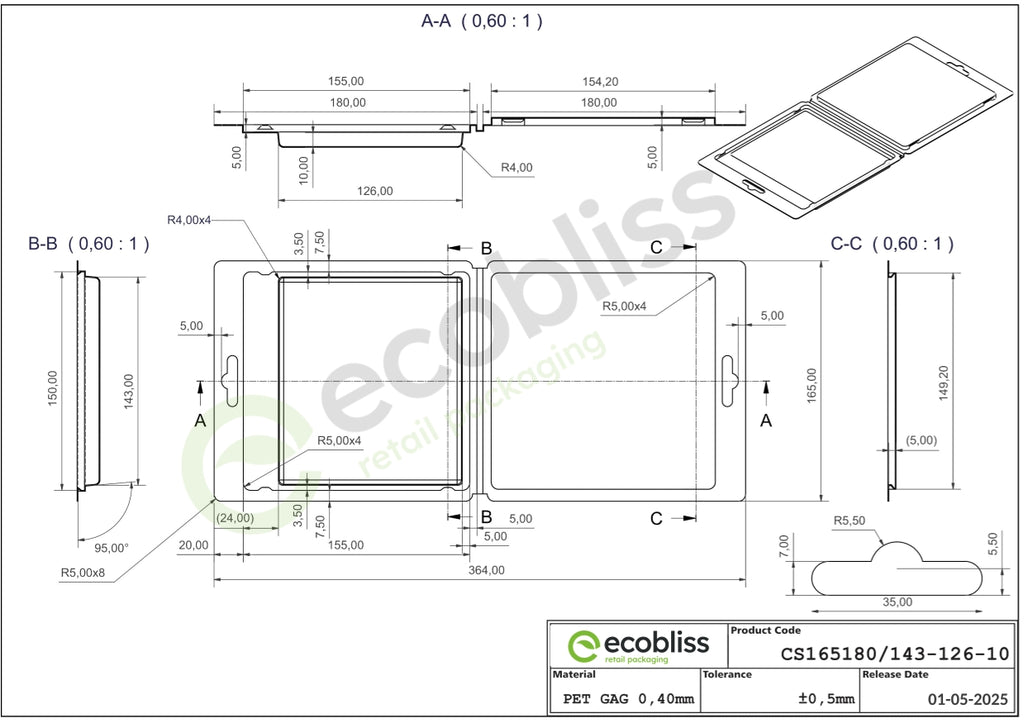 Whether you're packaging electronics, cosmetics, tools or other products, these clamshell blisters offer a combination of visibility, durability and easy handling and is made from sturdy, fully recyclable PET.